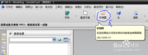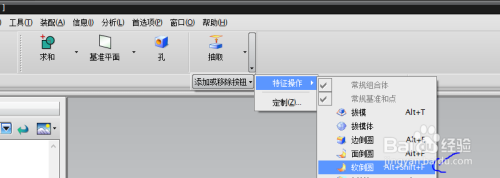左键单击菜单中的软倒圆,即可将其添加到特征操作东西条中。