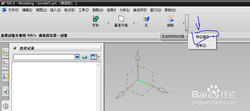 此时会弹出一个特征操作东西条,找到东西条选项。