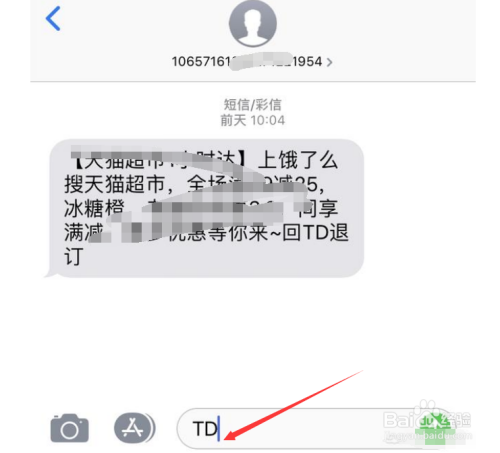 打开短信app,选择那些可以退订的信息。好比我前几天收到的一条动静,我不想今后再收到来自于这个号码的信息,我就可以输入”TD“退订,然后今后就不会再收到这样的信息了。
