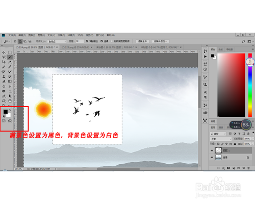 将前景色和布景色设置为默认的黑色和白色,如下图所示: