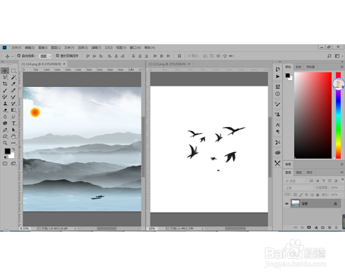 打开PS东西而且打开我们的筹办的2张素材图片,如下图所示: