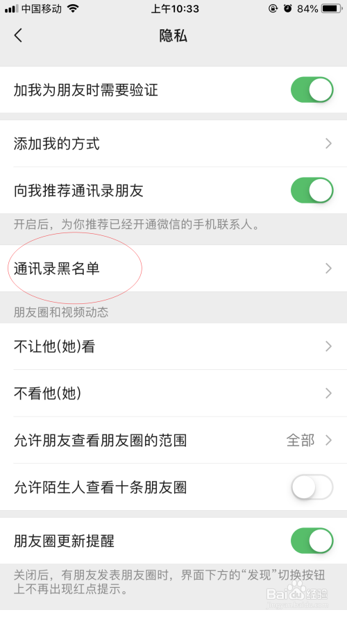 在点击通信录黑名单。