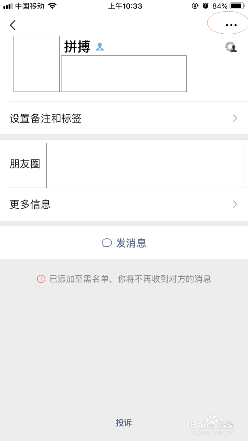 看完资料后,若是想移出黑名单,点击右上角的三个点。