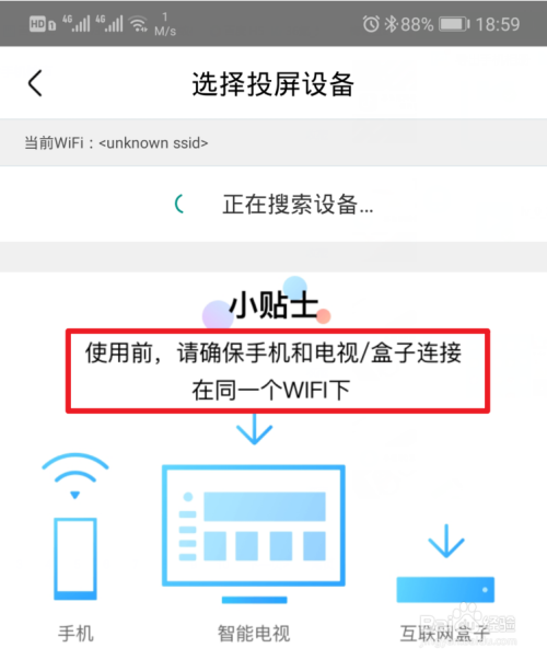 进入投屏界面后,页面会搜刮可供投屏的设备,期待搜刮完毕。
