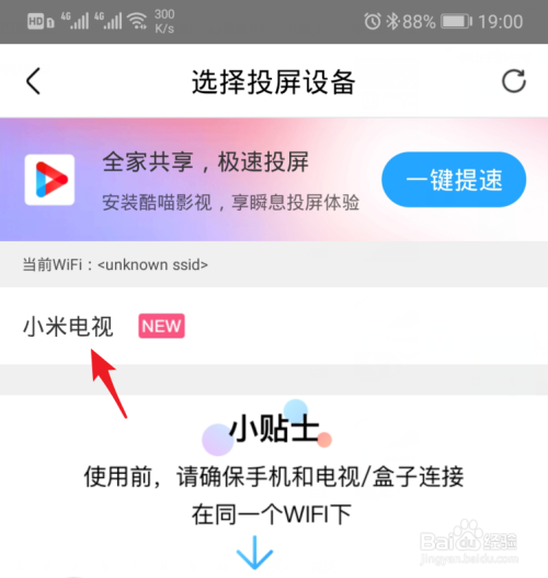 搜刮完毕后,页面会显示本身的电视设备,点击进行毗连。