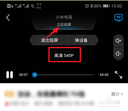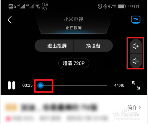 同时,在手机端也可以经由过程滑动进度来快进或者快退视频。经由过程右侧的音量键,也可以节制投屏视频的音量。
