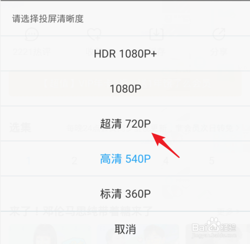点击清楚度后,也可以鄙人方弹出的选项内,选择投屏的清楚度,来提高画面的质量。
