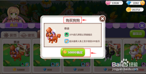 点击狗粮,喂食当作功,泰迪就站起来了;