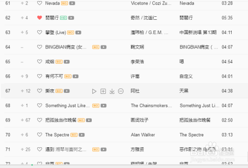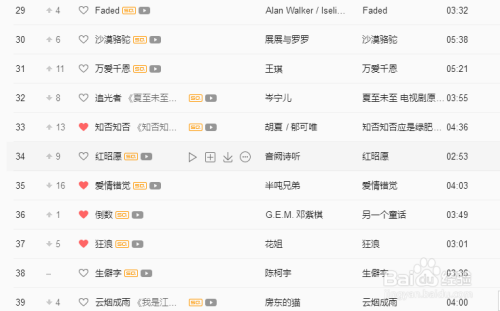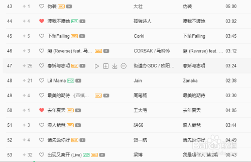 我们可以点击歌曲名字左边的心行符号保藏