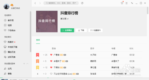 点击“抖音排行榜”就可以看到比来一段时候抖音比力火的歌曲以及热度排名了