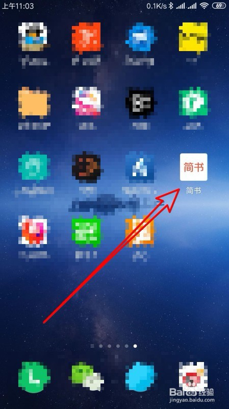 在手机屏幕上滑动,找到安装好的“简书”的图标。