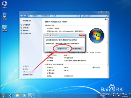 弹出提醒需要重启才能进级,点击“当即从头启动”