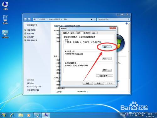 打开高级系统设置后,点击“机能”一栏里面的“设置”