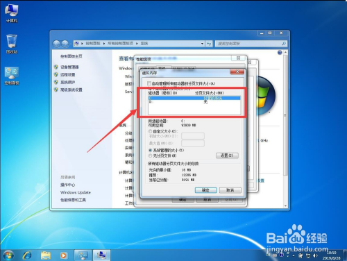 然后在驱动器一栏里面,选择想要设置虚拟内存的磁盘