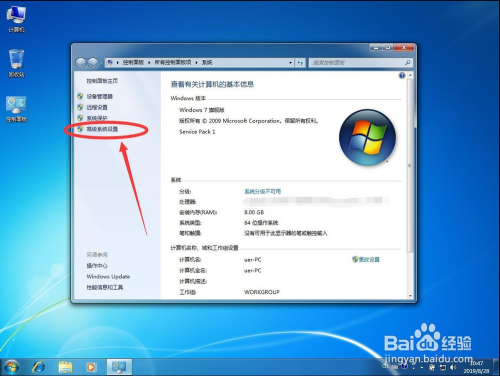 打开系统属性后,点击左侧边栏里面的“高级系统设置”