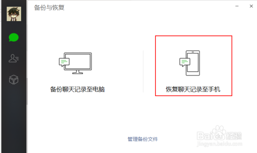 在接下来的界面中,我们点击“恢复聊天记实到手机”。