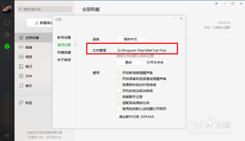 第四步在通用设置界面,可以看到微信文件的默认保留位置D:\Program Files\WeChat Files\,微信聊天记实就在这个文件夹里面存储着,如下图所示:
