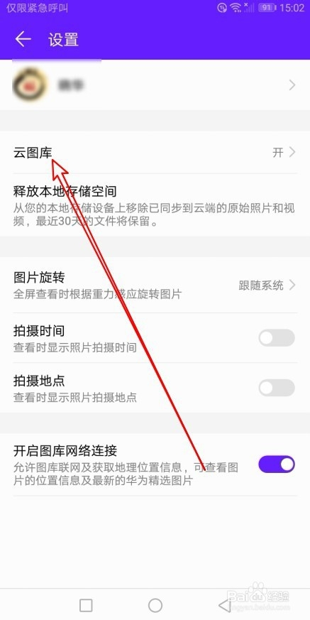 然后在打开的图库的设置页面中,我们找到“云图库”的设置项。