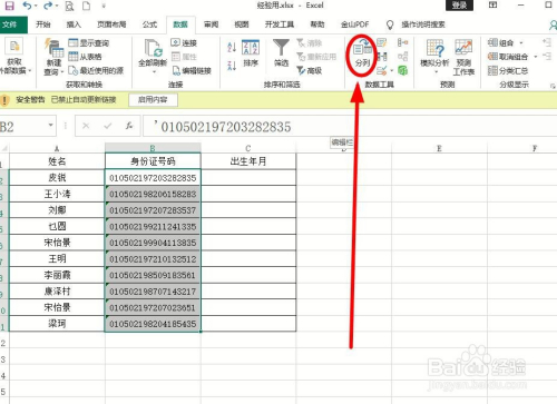 选中带怀孕份证号码的单位格,选择“数据”选项卡单击