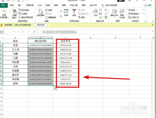 完当作上述操作之后,单击“完当作”就可以获得身份证号码中的出生日期信息了