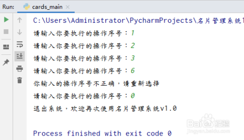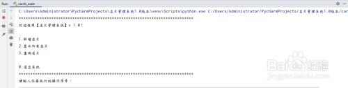 运行代码,显示菜单,运行无误。 注:把显示菜单的函数写如cards_tools的目标是为了削减本家儿函数运行的复杂度。