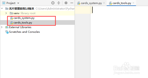 在“手刺办理系统”下新建两个PythonFile,别离是“cards_main”和 “cards_tools”,cards_main用来构建系统框架,cards_tools是用来界说系统中的函数,供cards_main挪用