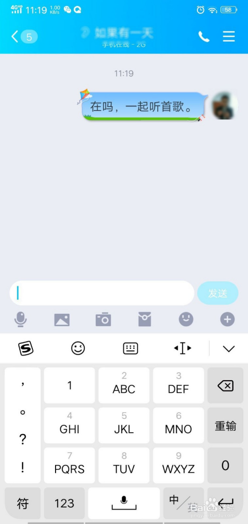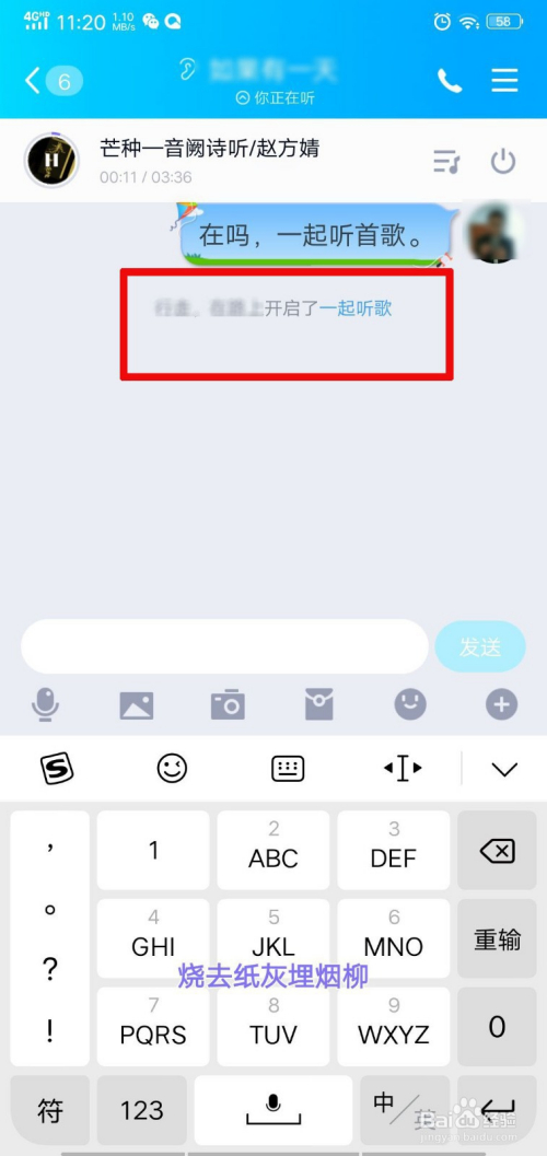 5、回到聊天界面,此时你和洽友在一路听歌呢。