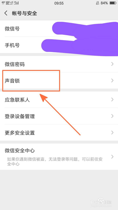 此时可以在账号与平安设置页面中看到声音锁,点击选择声音锁;