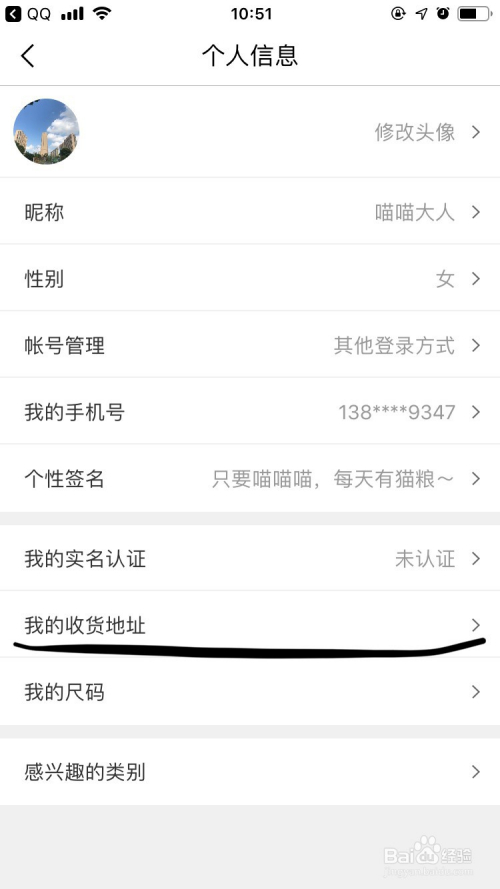 点击我的收货地址