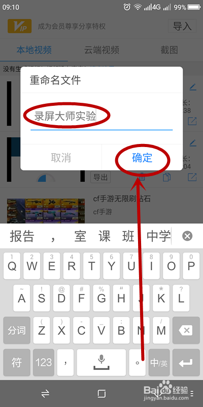 我们单击这个视频的重定名按钮,给视频取一个轻易记住的名字,好比“录屏巨匠试验”