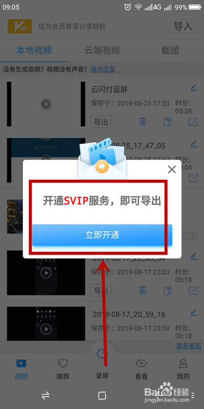 提醒必需开通SVIP办事才能导出视频,也就是说,不花钱是不克不及用录屏巨匠来导出文件的
