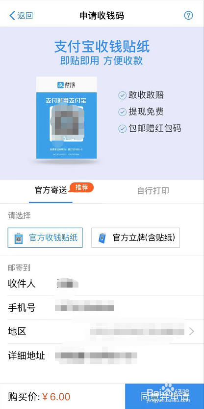 第五步,可以选择官方寄送二维码贴纸和立牌,不外都是要收费的;