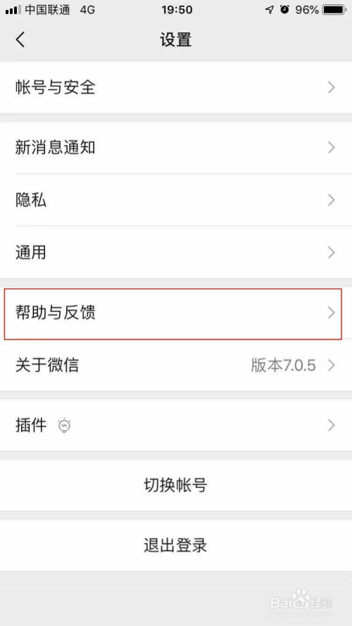 然后进入微信的设置列表后,我们选择【帮忙与反馈】的选项进入。如图所示