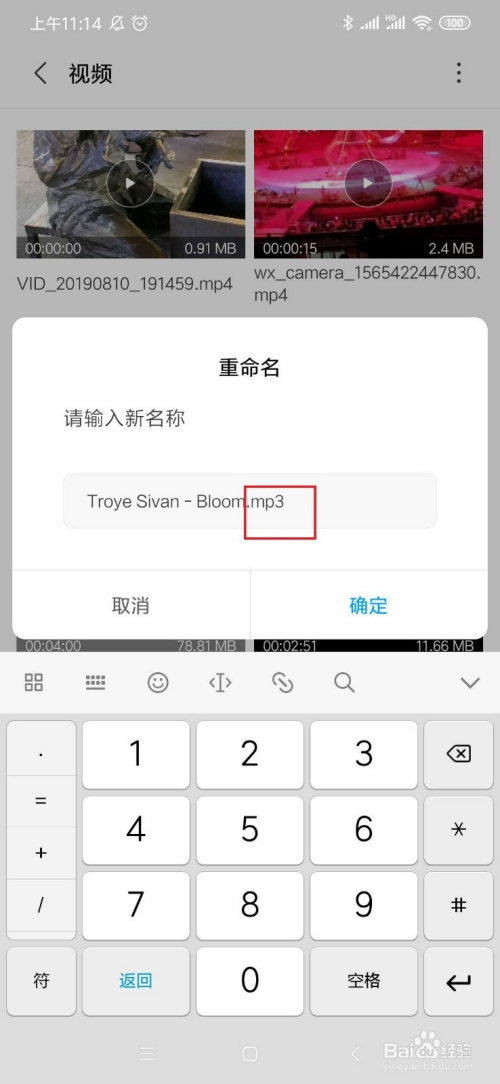 在手机中找到文件办理,将mv文件重定名