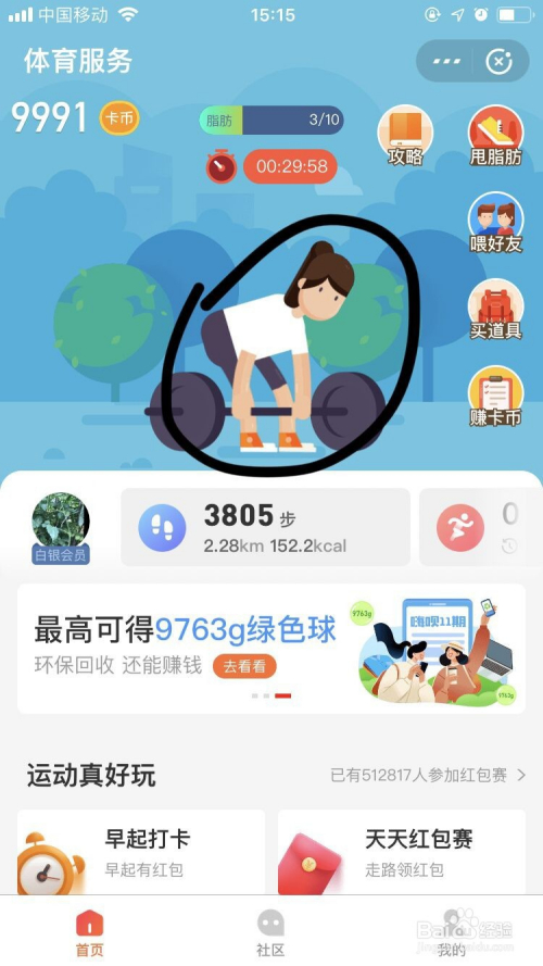 图像的小人就起头举铁了,30分钟后会有5个卡币的奖励哦。