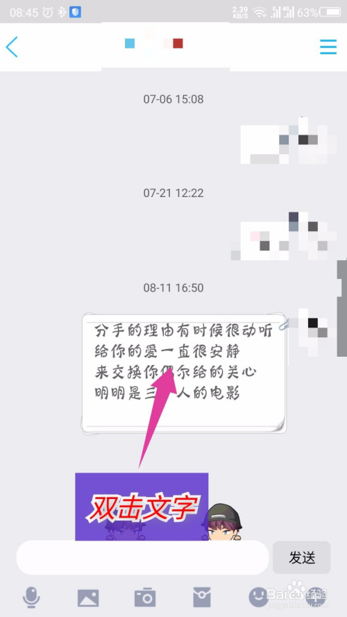 在聊天界面,选摘要朗读的文字,双击文字内容。如图所示