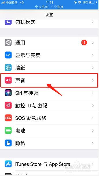 然后返回到设置界面,在设置下面找到“声音”点击进入;