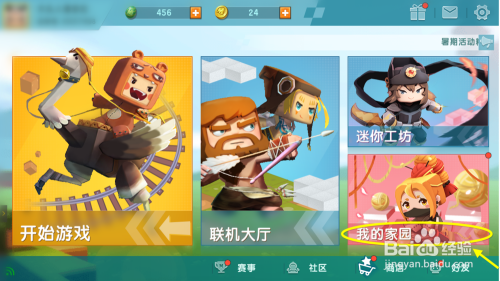 在未进入存档的环境下若是想要查看仓库,先可以点击本家儿界面“我的家园”。