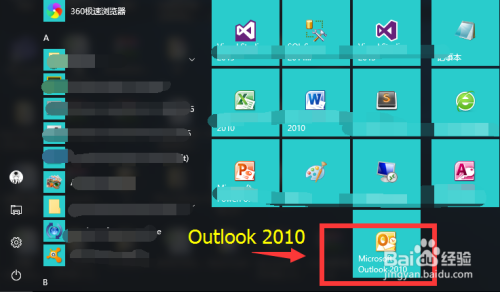 在开始菜单的程序中找到Microsoft Outlook 2010点击打开。