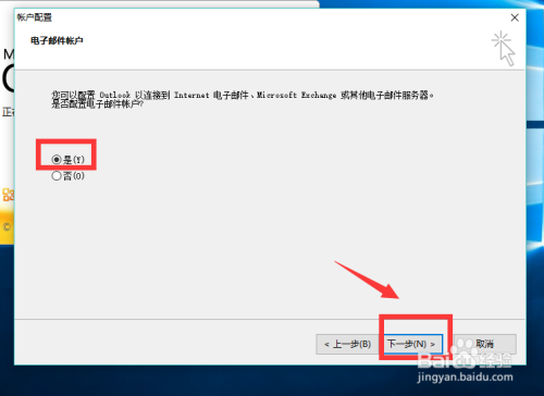 进入帐户设置后,默认选择 是点击下一步。