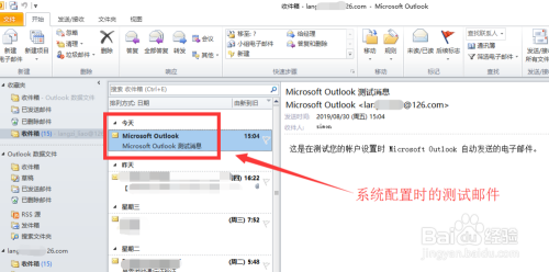 进入到Outlook邮箱本家儿页面后,我们看见了刚系统设置装备摆设时的测试邮件,暗示126邮箱帐户添加到Outlook中当作功。