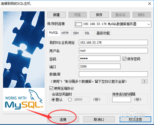 在弹出的“毗连到我的SQL本家儿机”对话框中,点击“新建”,输入毗连名称,如下图所示: