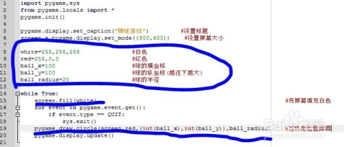此刻我们要让屏幕为白色布景,并显示一个球。输入: