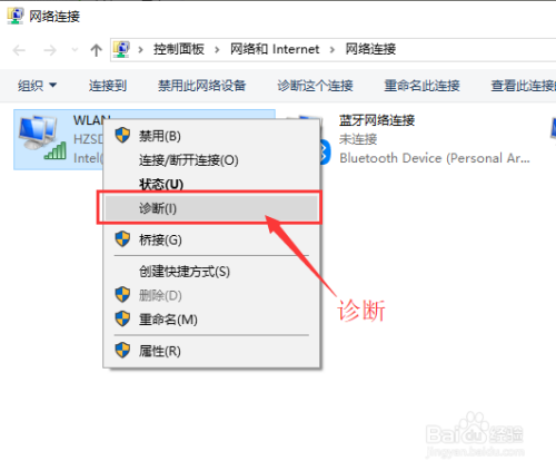 若是叹号还存在,且仍是无法连接网络上网,那么可以试一下“诊断”功能。在打开的收集毗连界面中,找到无线毗连“WLAN”,右键单击,并选择“诊断”,当诊断完毕,可以经由过程测验考试修复收集毗连。
