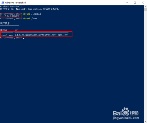 接下来,我们对比一下,whoami /user 指令和以上指令运行成果的分歧;