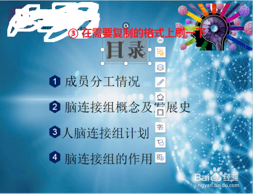 鼠标滑动呈现刷子状的图案,将此格局刷到所需的对象上即可~
