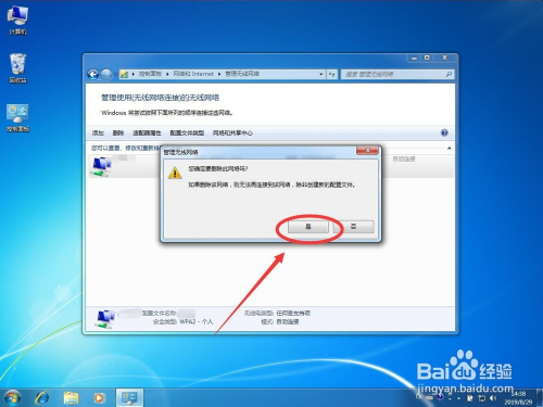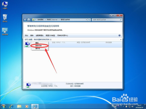 win7系统的无线收集保留列表可以从收集和共享中间里面的办理已知收集中找到,找到想要删除的收集选择删除即可