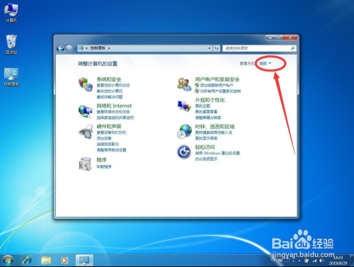 打开节制面板后,点击右上角查看体例右侧的“类别”