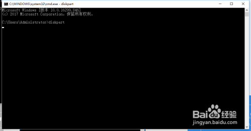 在号令窗口输入diskpart,打开磁盘运行的坏境窗口