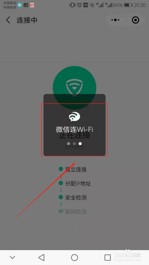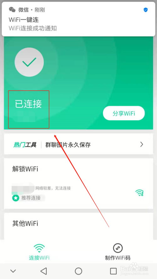 然后点击小程序搜刮到的WiFi热点后的毗连按钮。